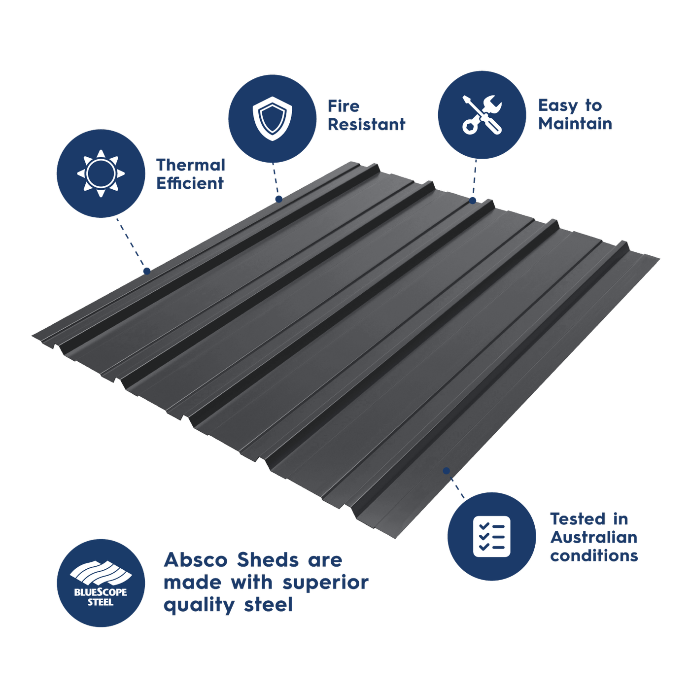 The Absco Rural Shed, is a single open bay storage solution tailored for convenience and durability. Boasting a generous door clearance of 2800 x 1930mm, this shed provides easy access, catering to the storage needs of tractors, hay, and larger equipment. Engineered for superior durability and fortified with a strong internal framework, it ensures lasting resilience in challenging farm or industrial environments. Complete with gutters and downpipes for effective water drainage, and an engineered N2 rating for added assurance, the Absco Rural Shed stands as a reliable and robust storage option, built to withstand the demands of your property. Made in Australia from high tensile steel, designed for tough Australian conditions, the Absco Rural also boasts a lifetime warranty. Engineers plans for submission to local authority may be required. Check with your local council before ordering. Absco sheds are designed to be anchored to a concrete slab (not supplied). Bolt down kits are included with this shed kit. Absco recommend working at waist height using trestles and timbers for a faster build. 2-3 people are required to build sheds larger than 1.5 x 1.5m to assist with holding panels upright during the final construction. More people are required for larger structures. To assist with your assembly, download the ‘Absco Sheds’ app to view easy to follow assembly videos and instruction manuals, warranty information, and product details. This app is free to download from the App Store and Google Play store.