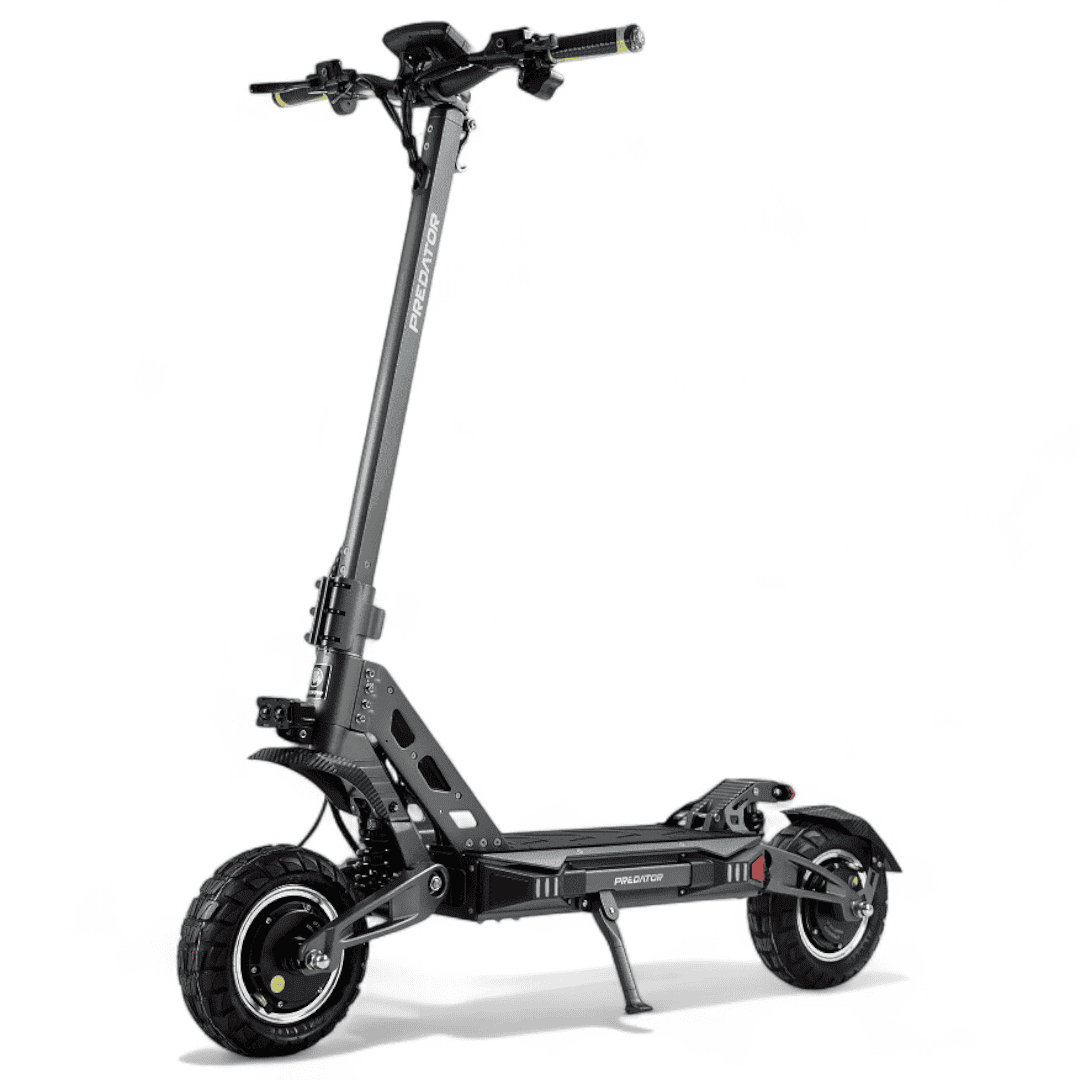 The Predator Dual Motor All-Terrain Beast is a rugged and powerful electric scooter built for riders who demand high performance across a variety of terrains. Featuring dual motors and large off-road tyres, this scooter is engineered to tackle rough paths, steep hills, gravel, grass, and uneven surfaces with confidence. Its robust construction, enhanced suspension, and heavy-duty design make it ideal for adventure seekers, commuters who face mixed terrain, and riders who want both speed and durability in one versatile package.