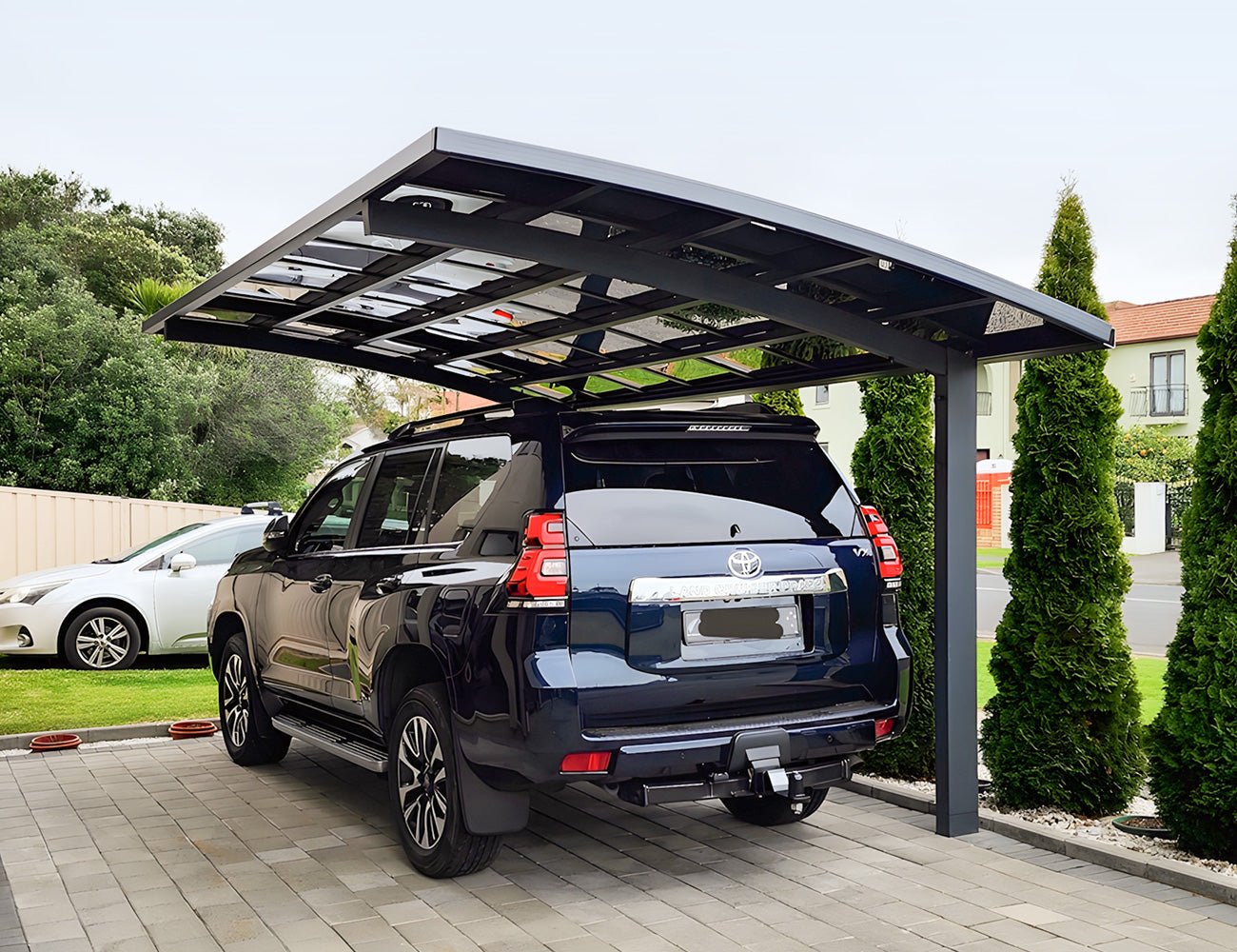 Park your car or lounge in the shade—either way, this cantilever carport has you covered. With just two posts, it keeps your space wide open and easy to use, whether you’re pulling in after a long day or setting up chairs for a lazy afternoon. The sleek arch adds a subtle, modern touch that feels intentional without trying too hard.